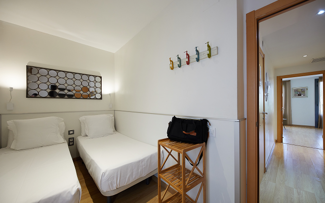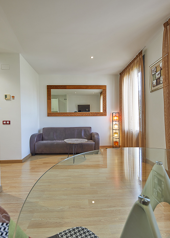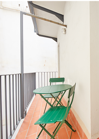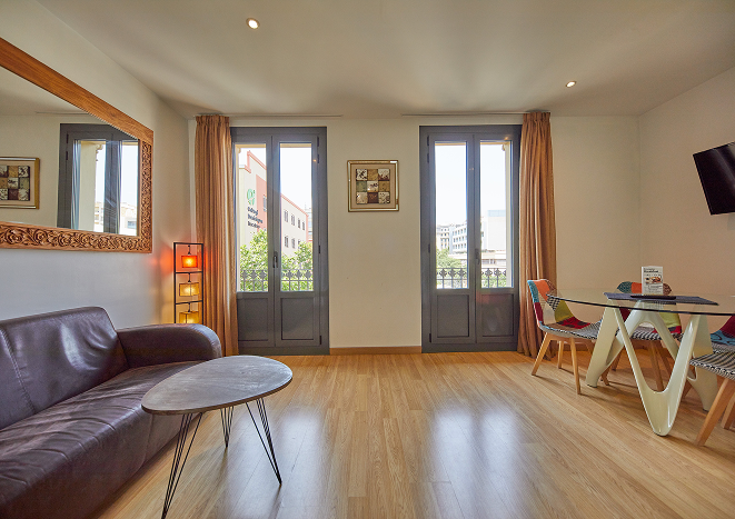 The apartment has an area of 65 m² and a maximum capacity of 4 people. It features a fully equipped kitchen with a washing machine and is specially designed for families seeking greater comfort, thanks to its two separate bedrooms — one with a double bed and another with two single beds. This apartment includes two balconies: one interior, furnished with a terrace table and chairs, and one exterior with direct views of Gaudí’s temple.